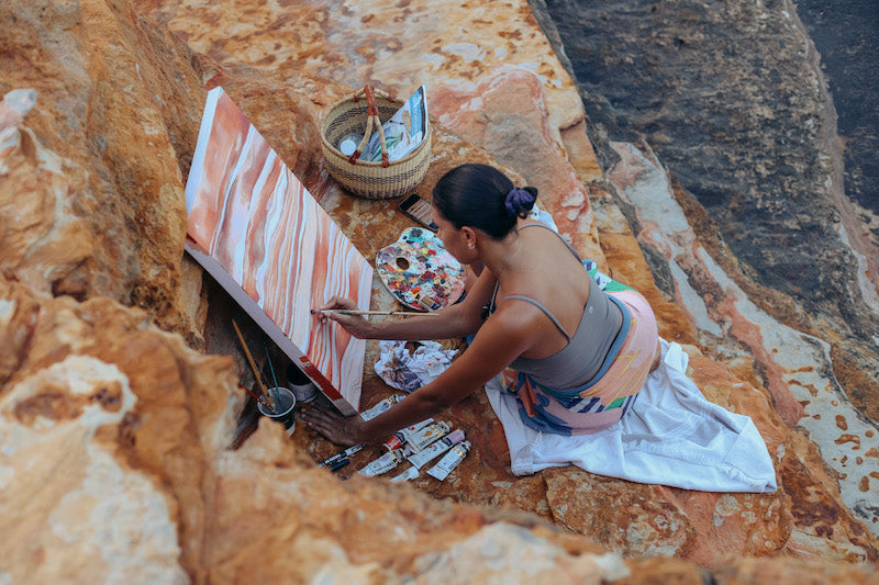 Bek Treacy is a visual artist based in the small coastal town of Broome, Western Australia. Growing up between Derby and Broome, she was surrounded by the rugged beauty and vibrant colours of the Kimberley — a landscape that continues to inspire and shape her artistic practice.